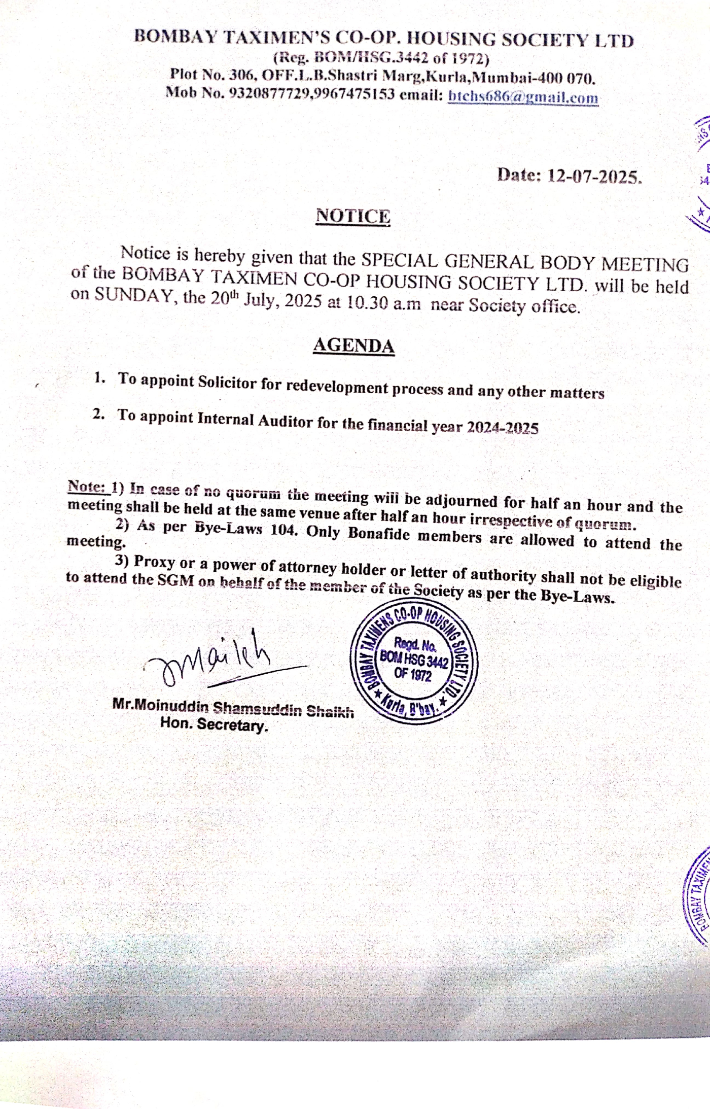 GOM LETTER MENTIONING BOMBAY TAXIMEN SOCIETY IS PART OF BMC