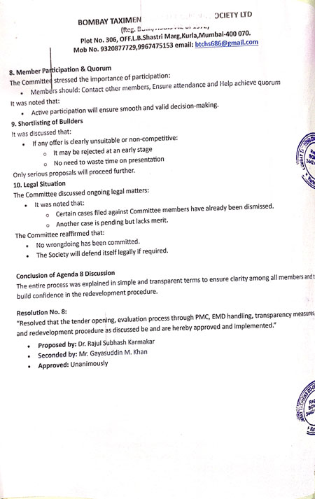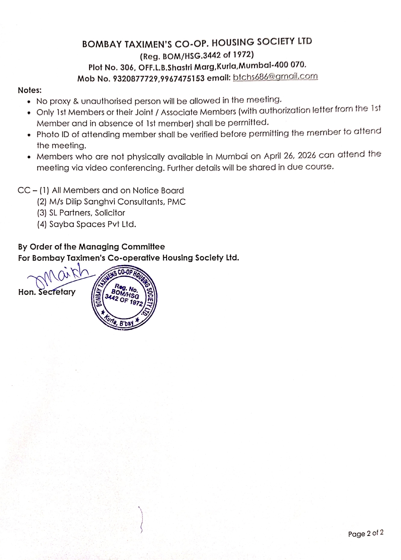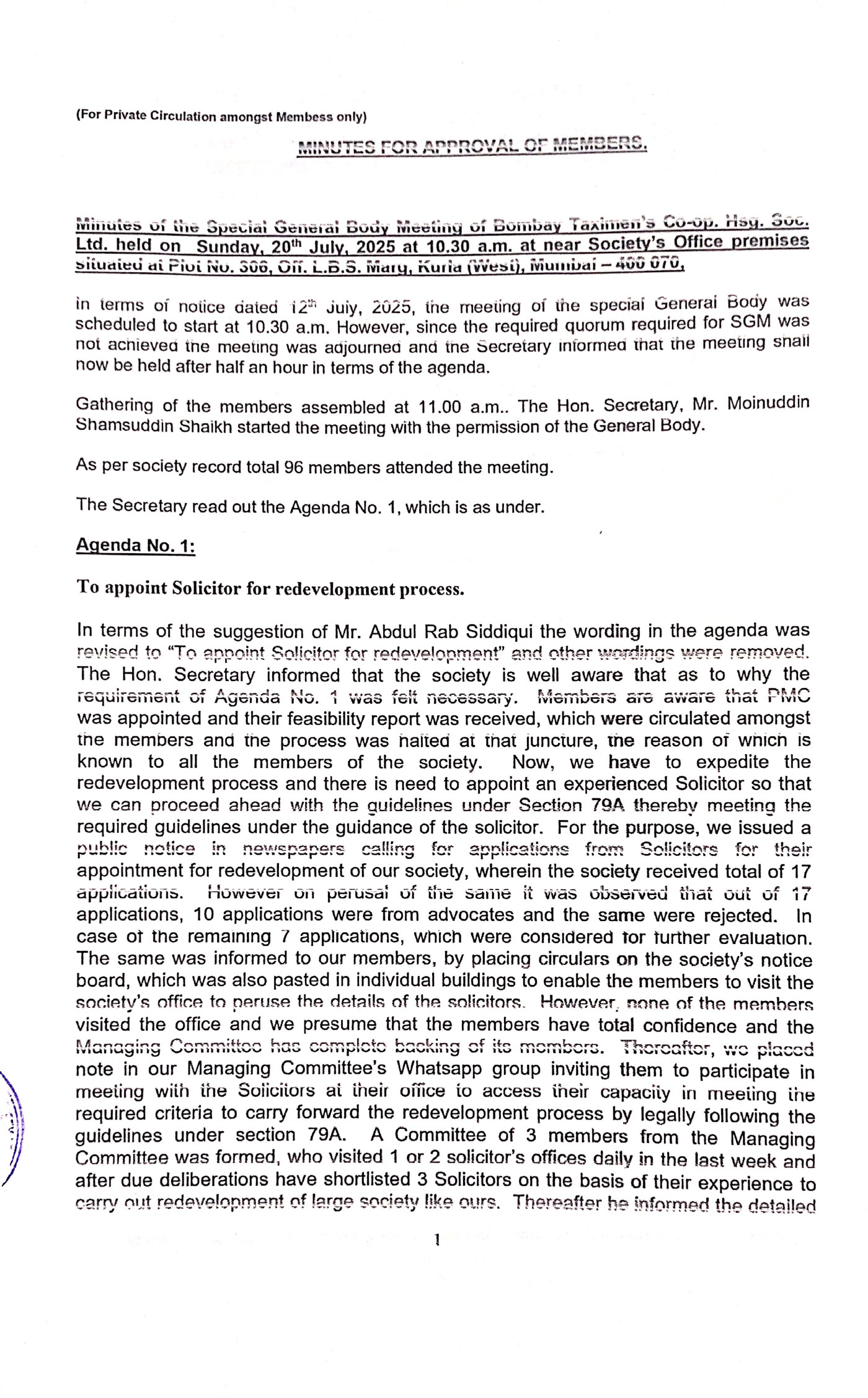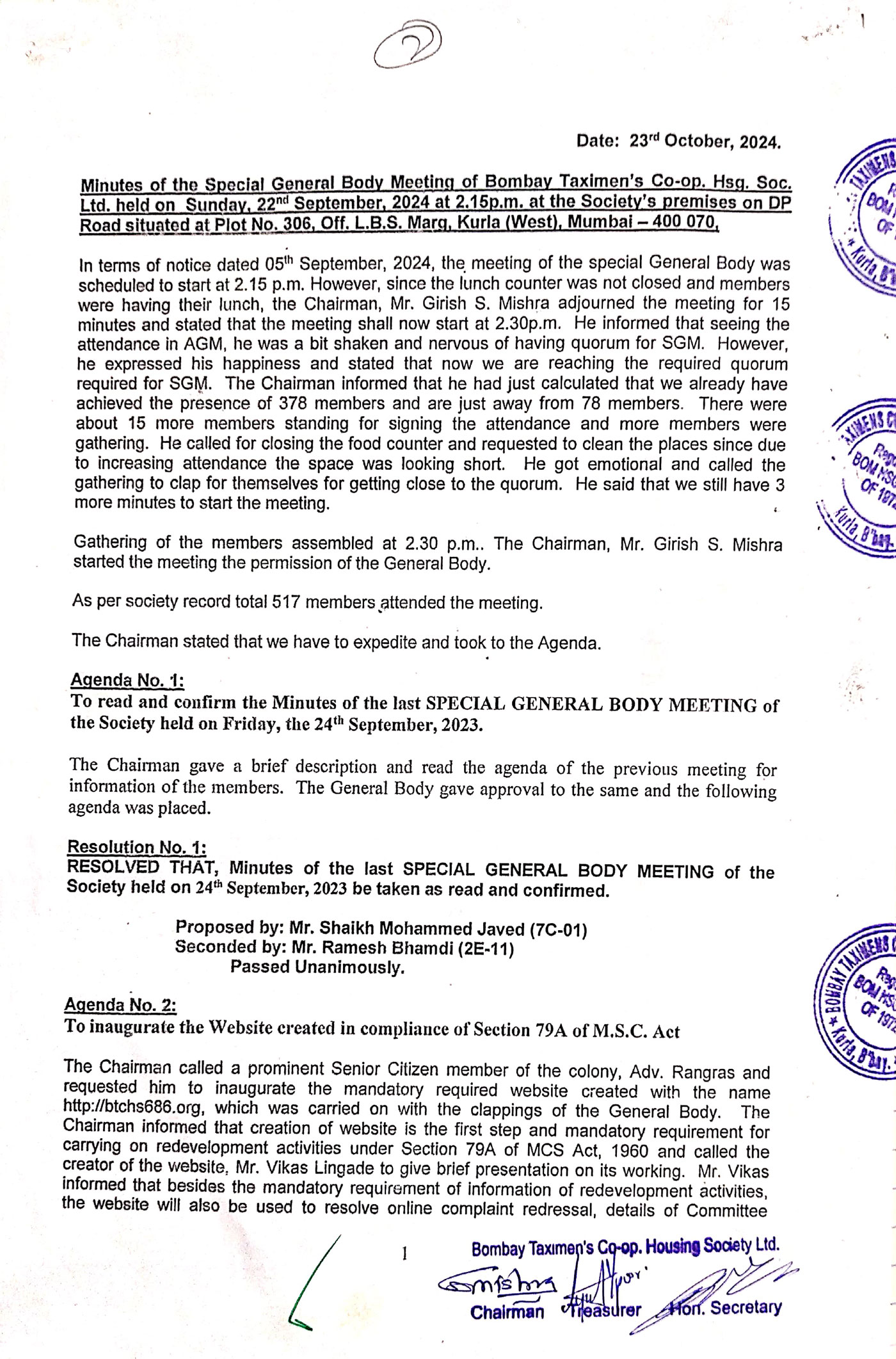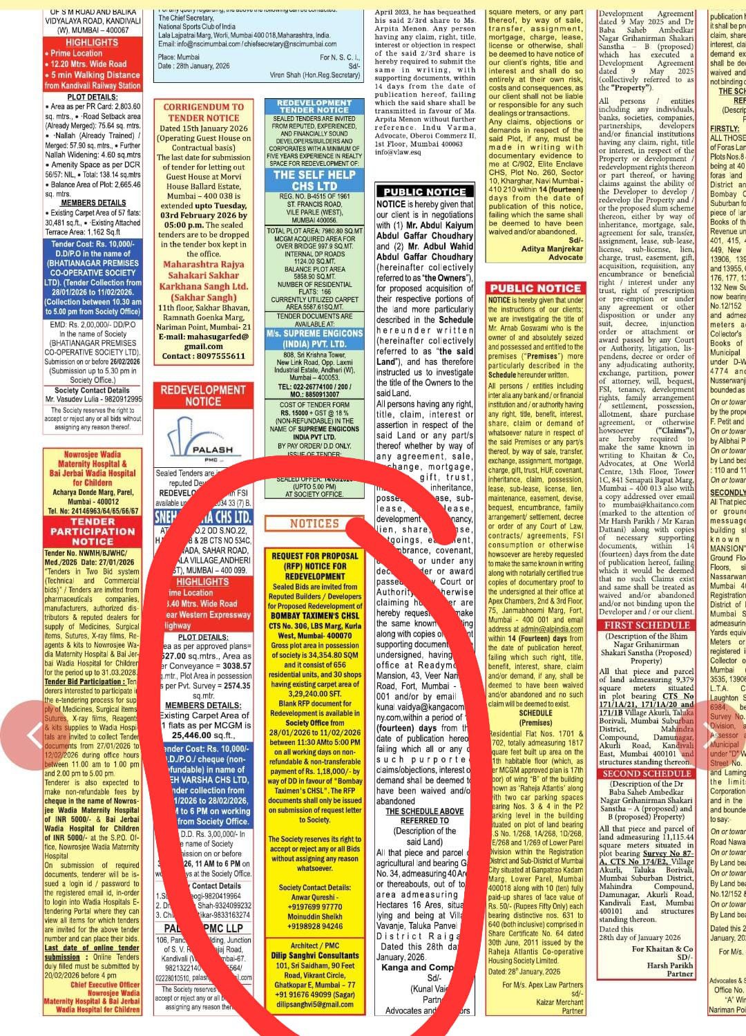 The plot area of C.T.S.No.147 of Village Kurla-4 as per the Property Card is 34,354.80 sq.mt., out of which area of in the name of Bombay Taximen’s C.H.S. Ltd. is 28,424.00 sq.mt. and In possession of 5828.60 sq.mt. Hence at present, the plot area to be considered for the redevelopment is 34,354.80 sq.mt.