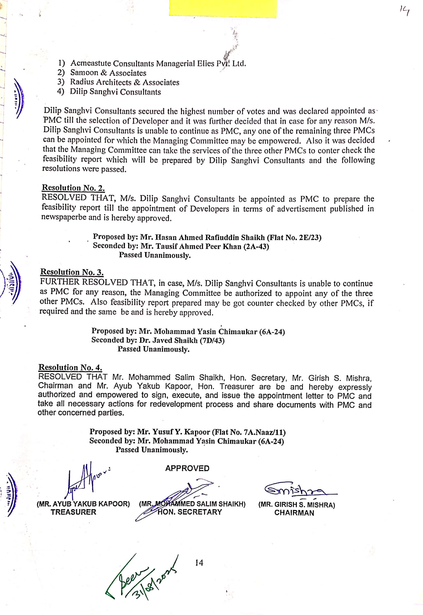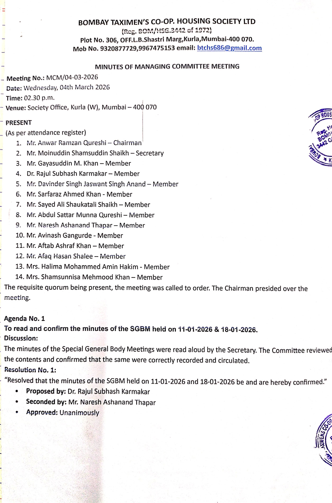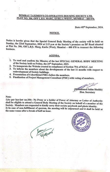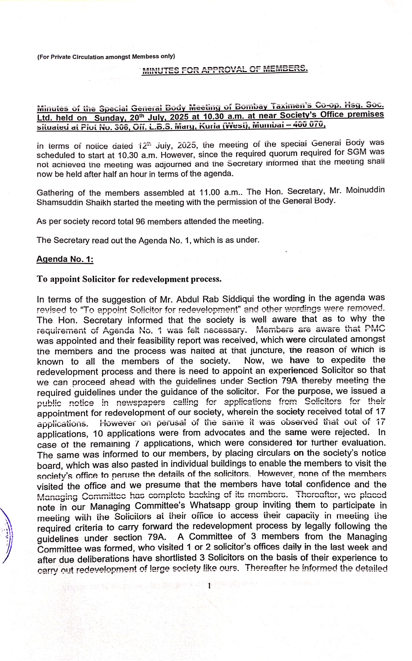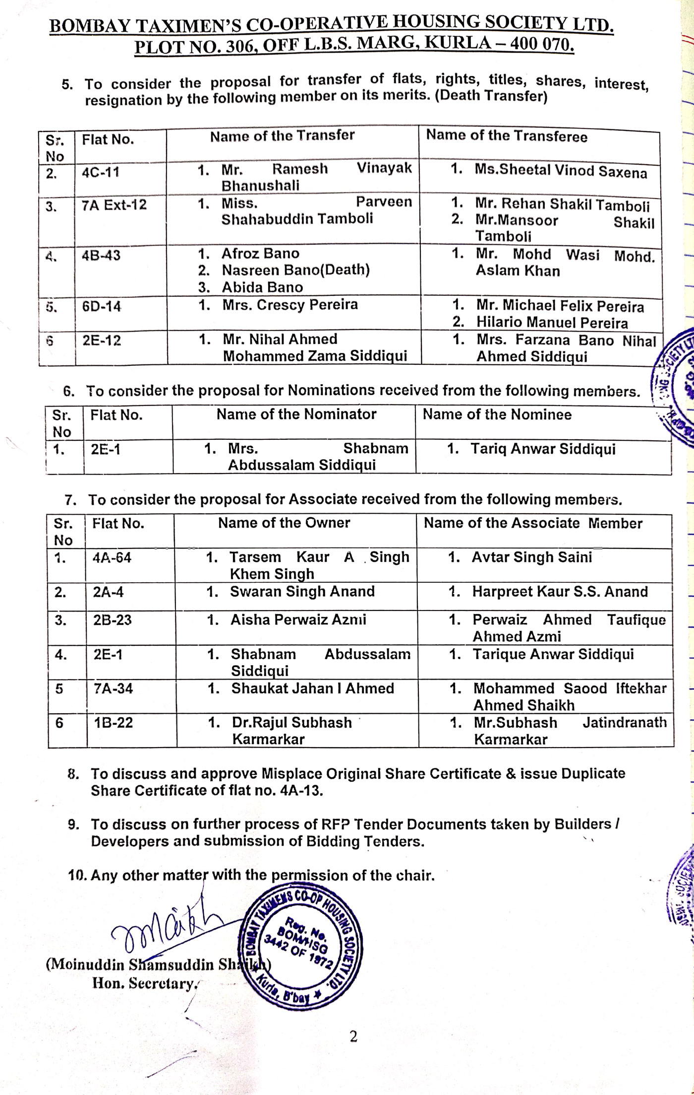 The plot area of C.T.S.No.147 of Village Kurla-4 as per the Property Card is 34,354.80 sq.mt., out of which area of in the name of Bombay Taximen’s C.H.S. Ltd. is 28,424.00 sq.mt. and In possession of 5828.60 sq.mt. Hence at present, the plot area to be considered for the redevelopment is 34,354.80 sq.mt.