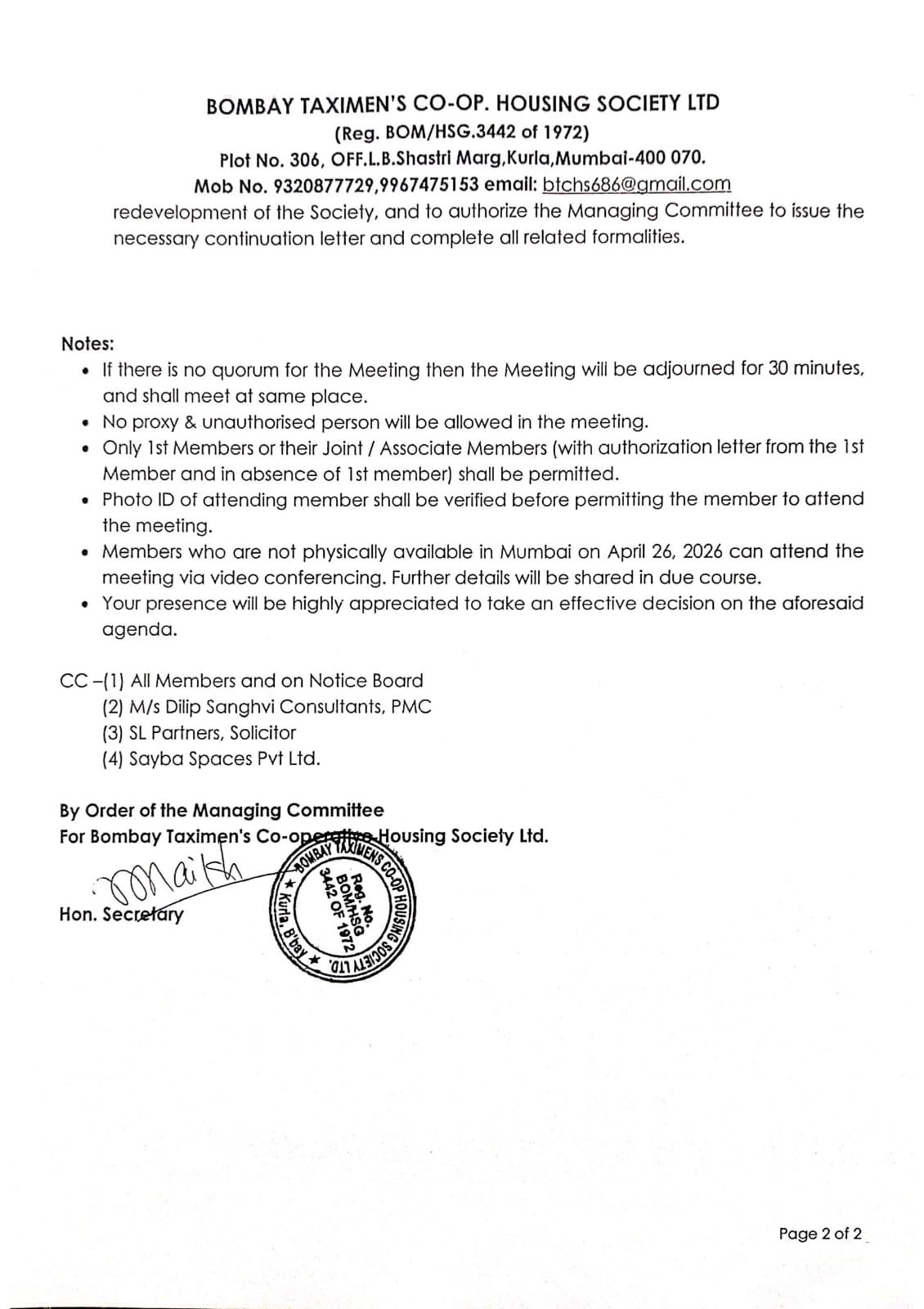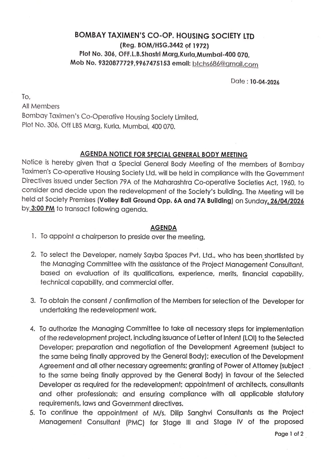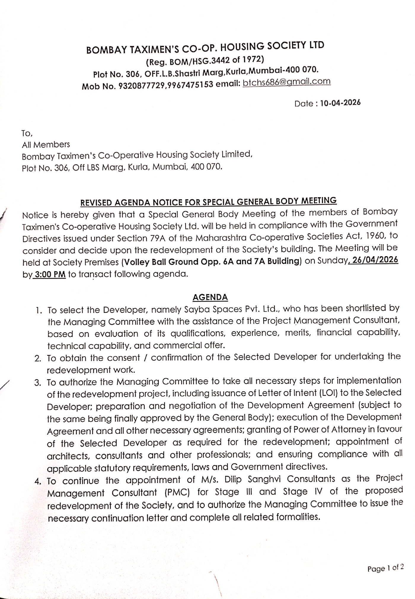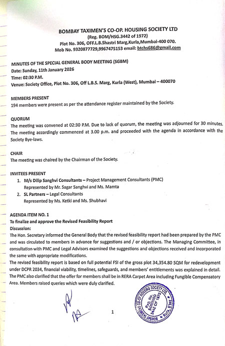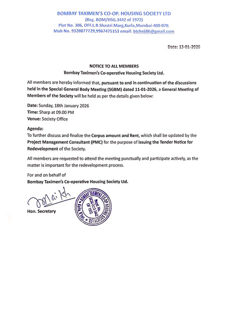 REDEVELOPMENT OF BOMBAY TAXIMEN’S CO-OPERATIVE